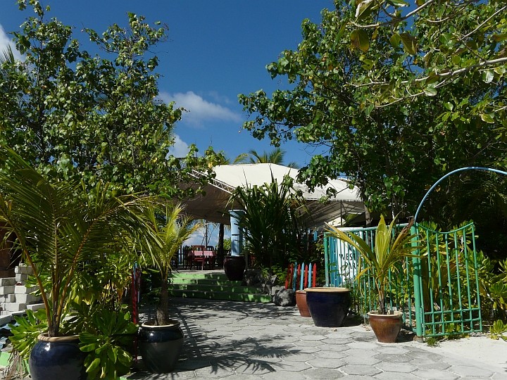 Eine der 21 Moscheen Males befindet sich bei den kleinen Bistros unweit des Hafens an der Südwestecke der Insel.